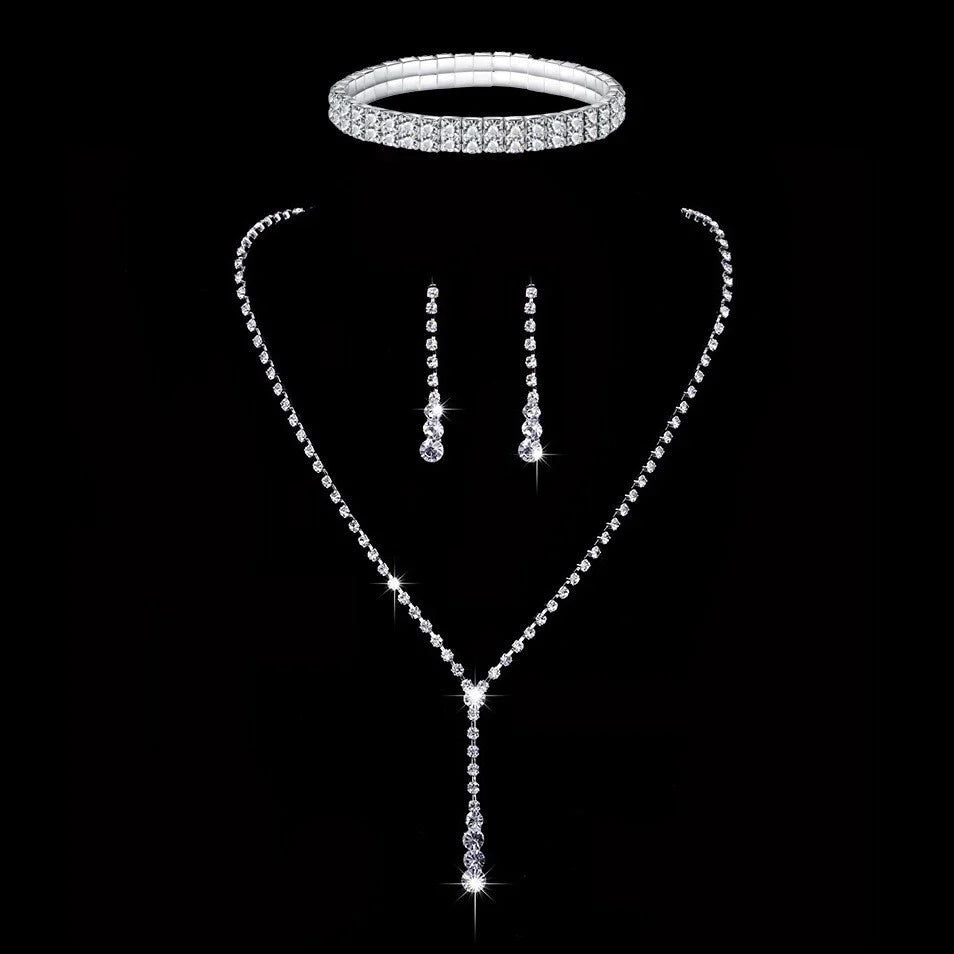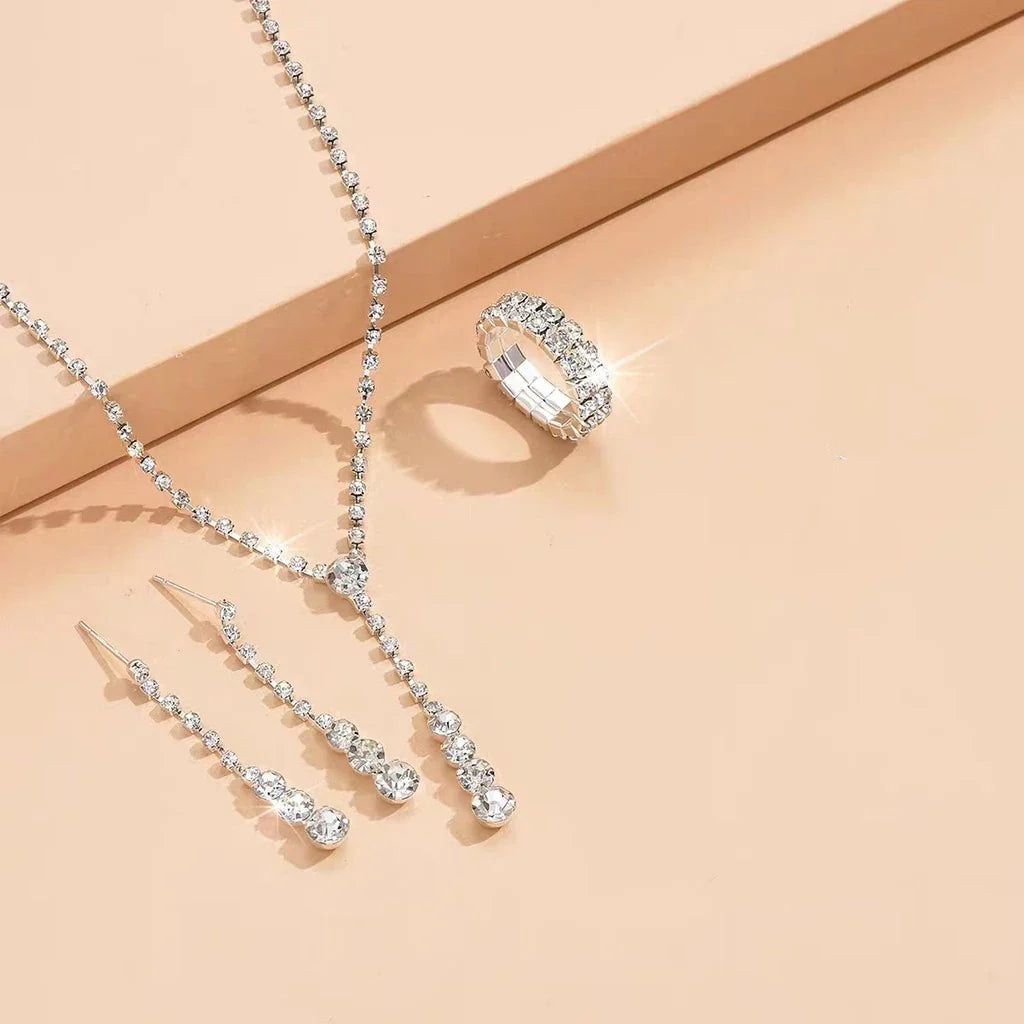 Conjunto completo 3 em 1: colar, brincos e anel