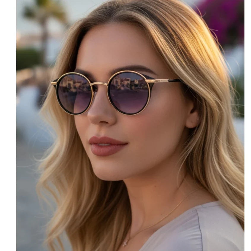 Os Óculos de Sol Femininos LG2402 VALLARE combinam formato redondo estilo gatinho, armação em acetato italiano e metal rose de alta qualidade. As lentes degrade em policarbonato oferecem proteção UV400, garantindo conforto visual e segurança contra os raios solares. Um acessório leve, resistente e perfeito para complementar qualquer look.