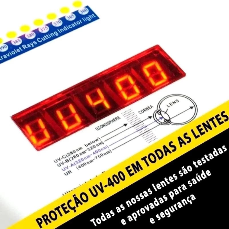 Proteção: UV400 (bloqueia raios UVA e UVB)