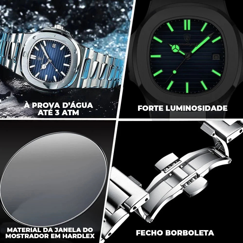 Material da caixa e pulseira: Aço inoxidável premium – não enferruja e mantém o brilho