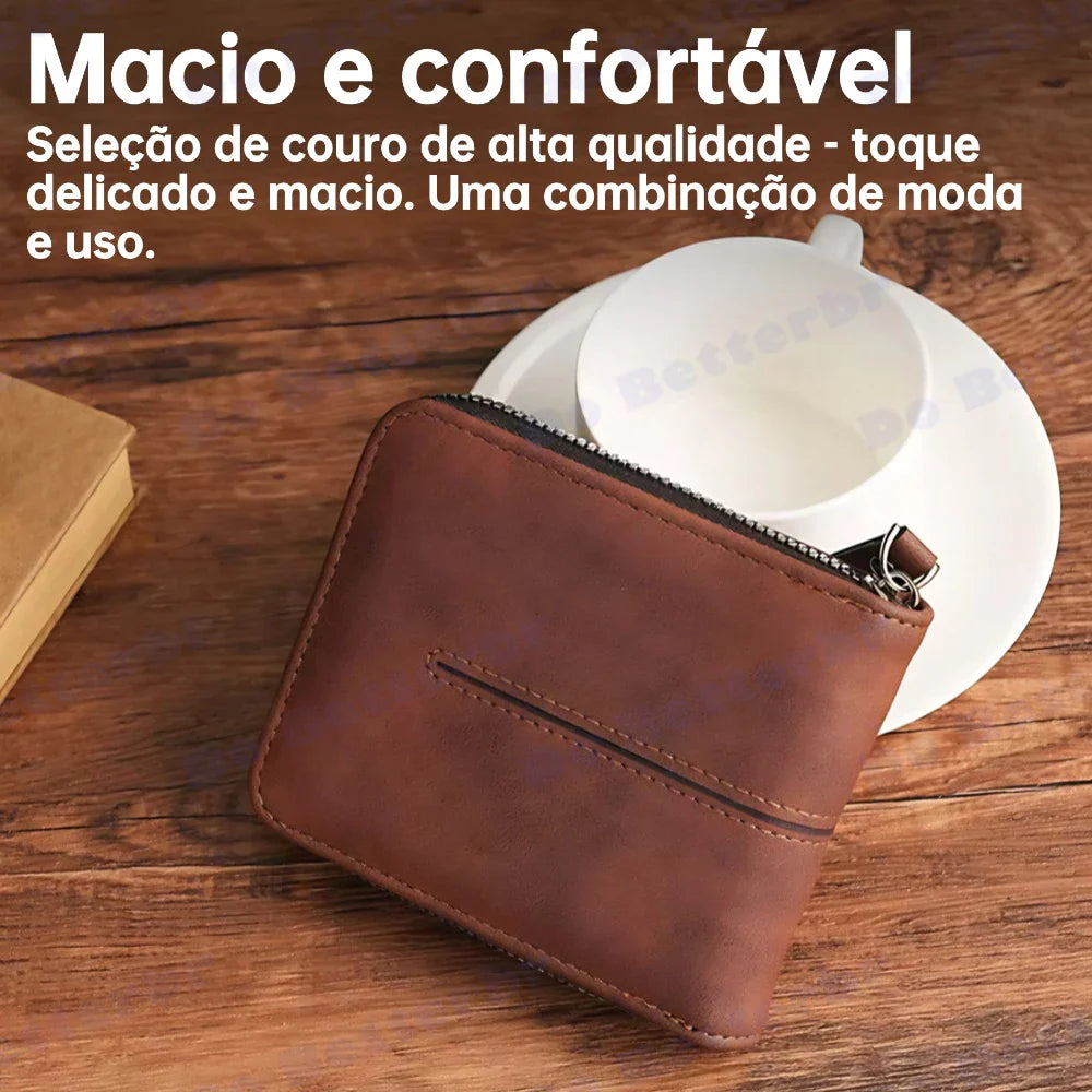 A Carteira Multifuncional de Couro VALLARE combina design retrô com alta funcionalidade, oferecendo amplo espaço para cartões, documentos e cédulas sem perder a praticidade. Leve, durável e elegante, é perfeita para o uso diário e para quem busca manter seus itens organizados com sofisticação.